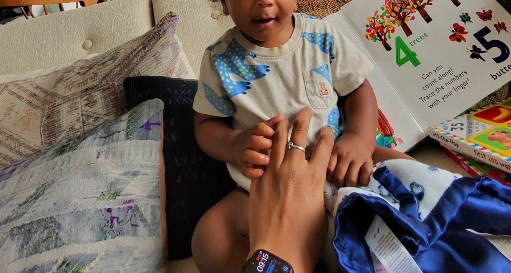 My little cupcake glanced at me briefly. Just a quick look. Enough to register my presence. Then, without urgency or panic, he lifted his tiny hand, grabbed the edge of the book, and raised it right back up.
